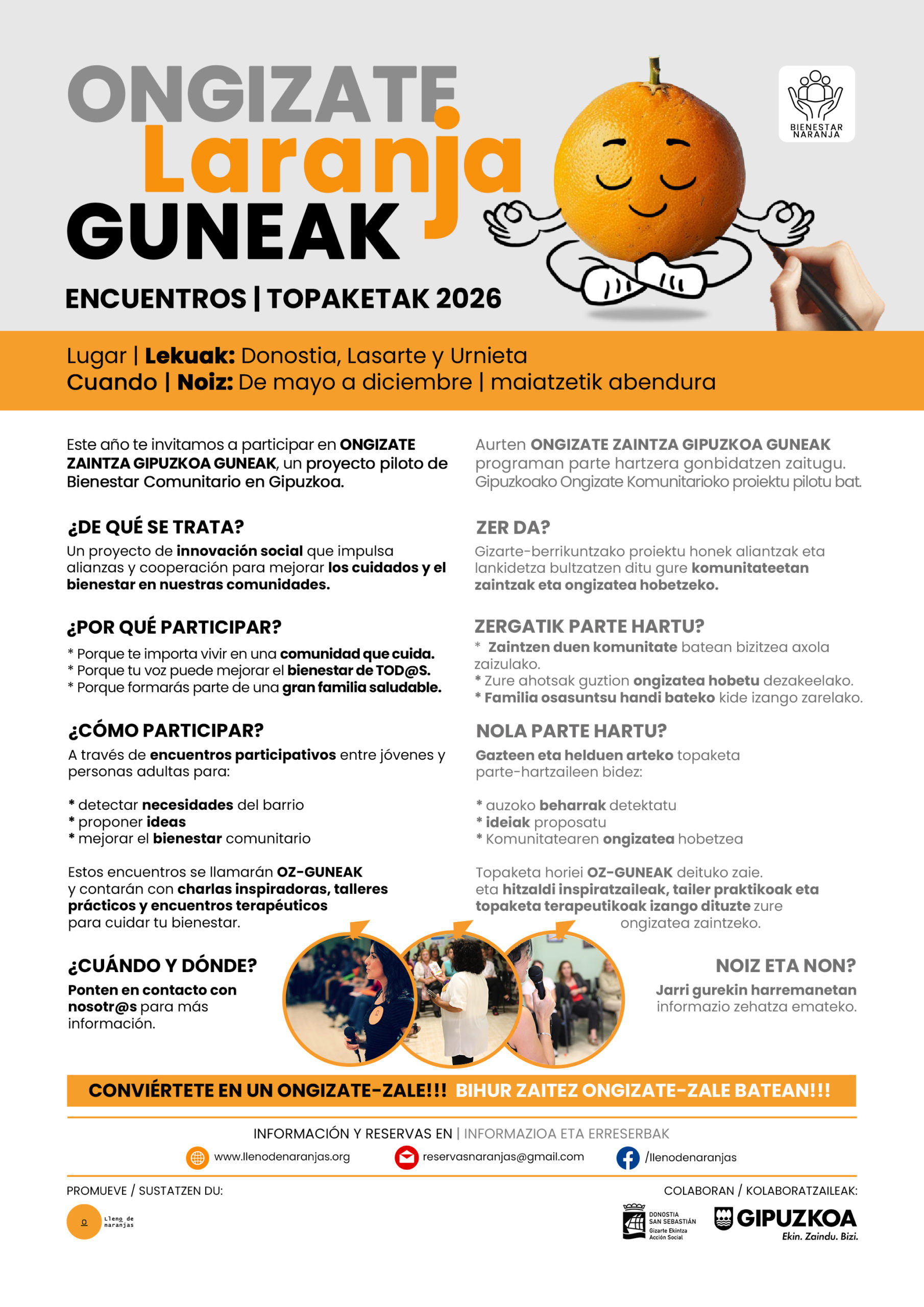 Este año te invitamos a participar en ONGIZATE ZAINTZA GIPUZKOA GUNEAK, un proyecto piloto de Bienestar Comunitario en Gipuzkoa.